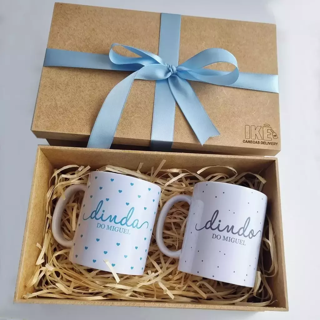 Este kit é composto por 02 canecas e 01 caixa em MDF.